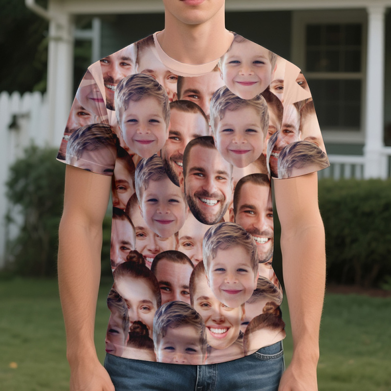 Personalized Face T Shirt for Men, Custom Family Faces Shirts, Personalized Photo Shirts for Men, Father Day Gift, All Over Faces T-Shirt