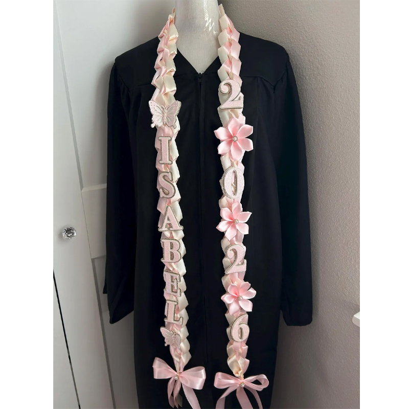 Personalized Graduation Lei With Flowers, Grad Gift, Class of 2026, Satin Ribbon, Single Braided Ribbon, Graduation Stole