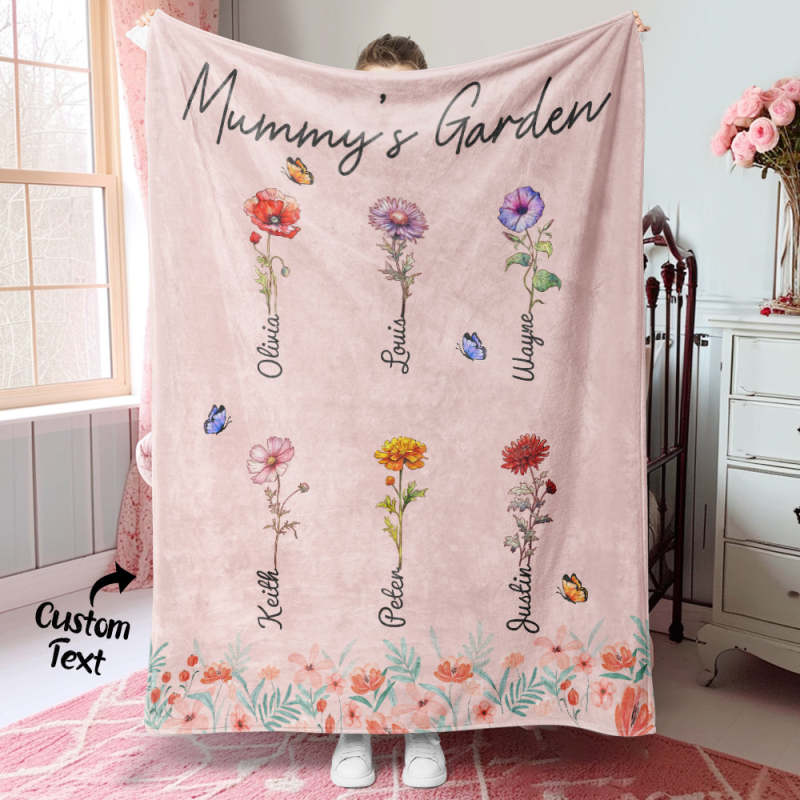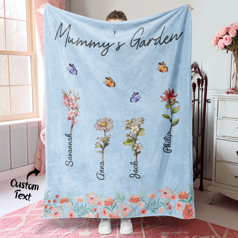 Personalized Grandma Mommy Garden Blanket Custom Birth Month Flower Blanket Warm Gift For Mom