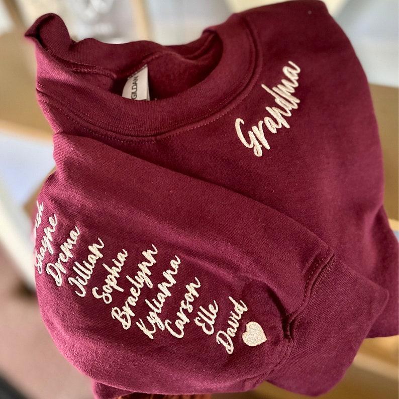 Father's Day Gifts Personalized Grandma Sweatshirt with Kids Names Embroidered Collar, Great Grandma Embroidered Sweatshirt, Mothers Day Gift Ideas for Grandma