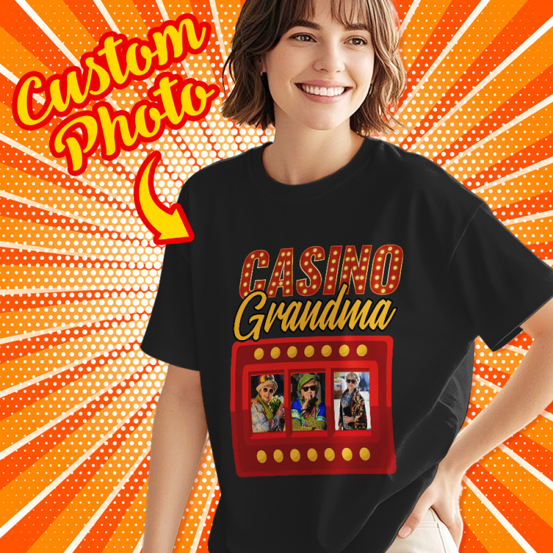Personalized Grandma T-Shirt Custom Lucky Tee Photo T-Shirt Gift For Mom