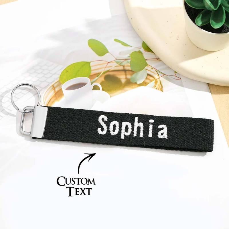 Father's Day Gifts Custom Embroidered Name Keychain Strap Personalized Key Fob Keychain for Dad