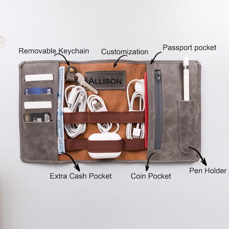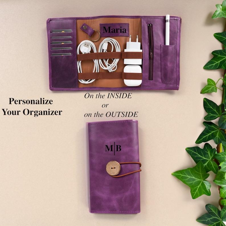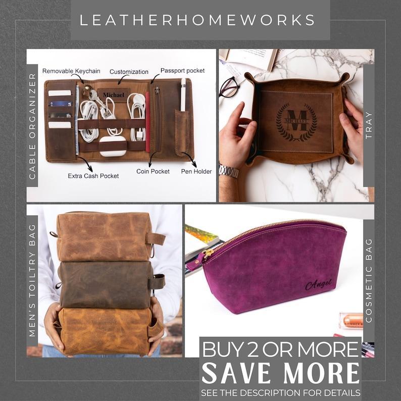 Personalized Leather Cable Organizer Graduation Gifts For Men, Collage Phd High School Graduation Gifts For Him, Cable Holder Gifts For Son