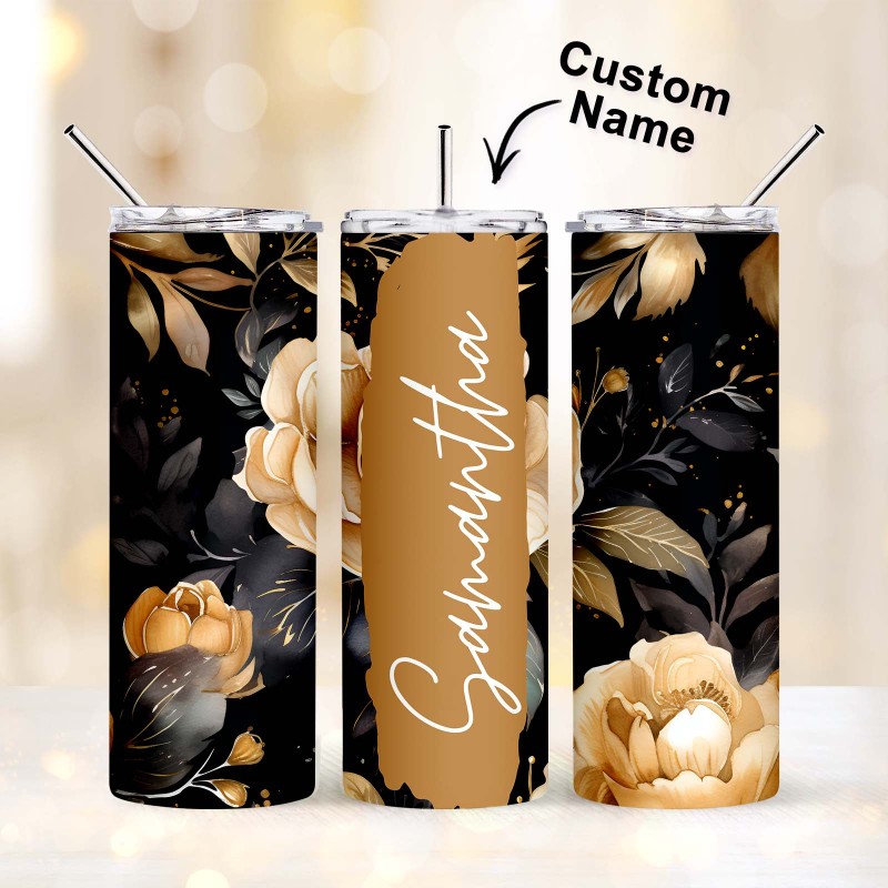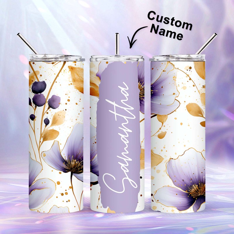 Personalized Name Floral Tumbler Skinny Sublimation Seamless Gift