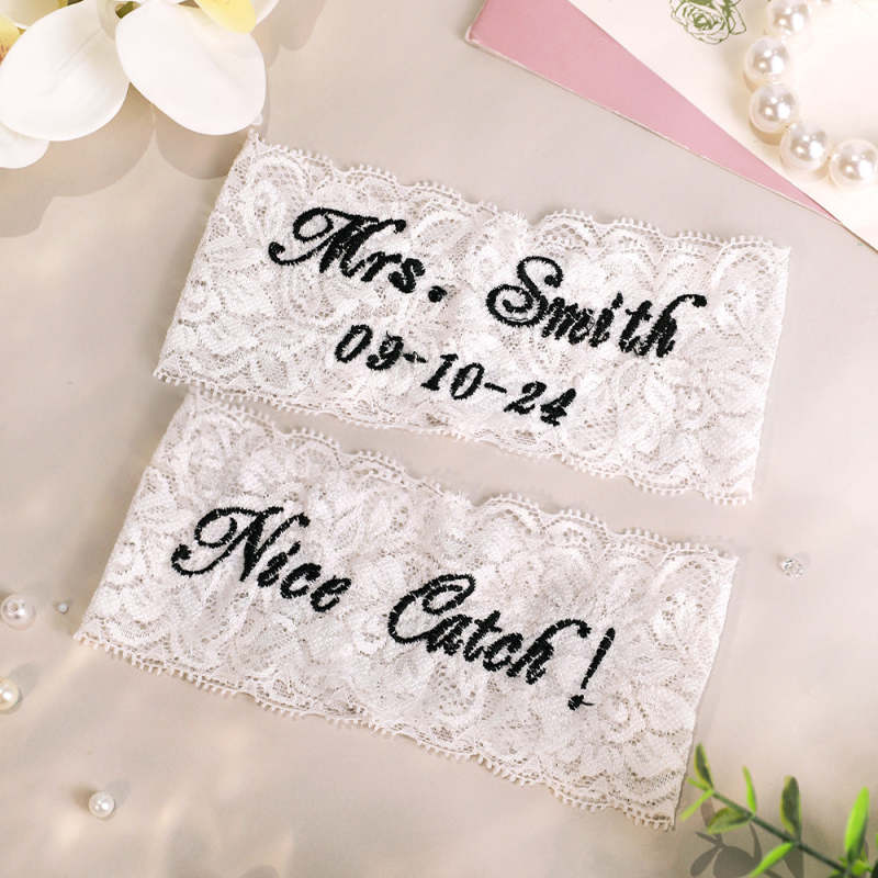 Personalized Wedding Garters Embroidered Bride Keepsake Gift for Bride