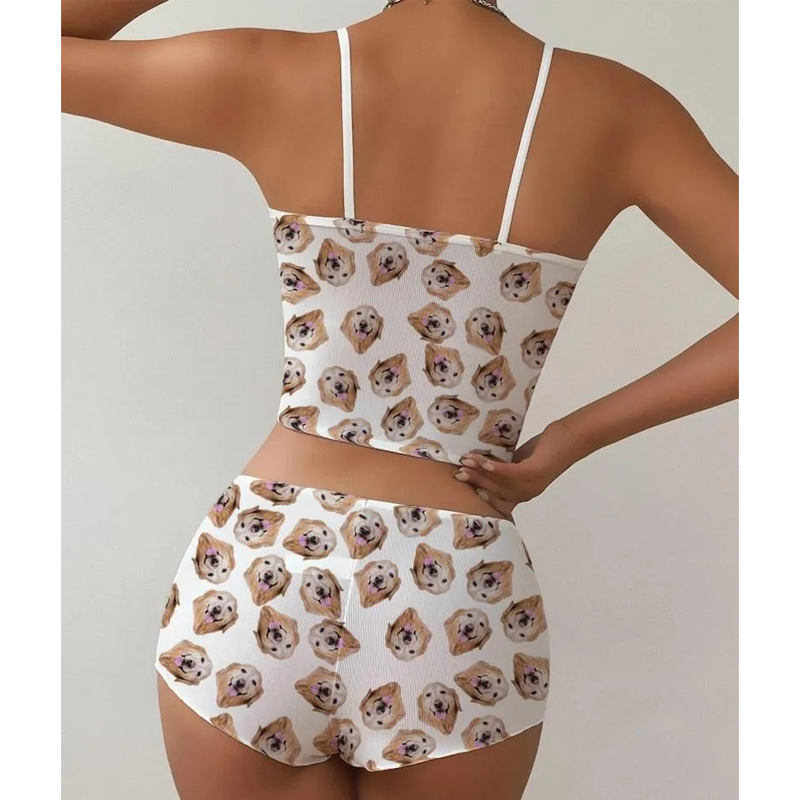 Photo Custom Appliques Notched Neckline Lingerie Set, gift, bachelorette party