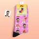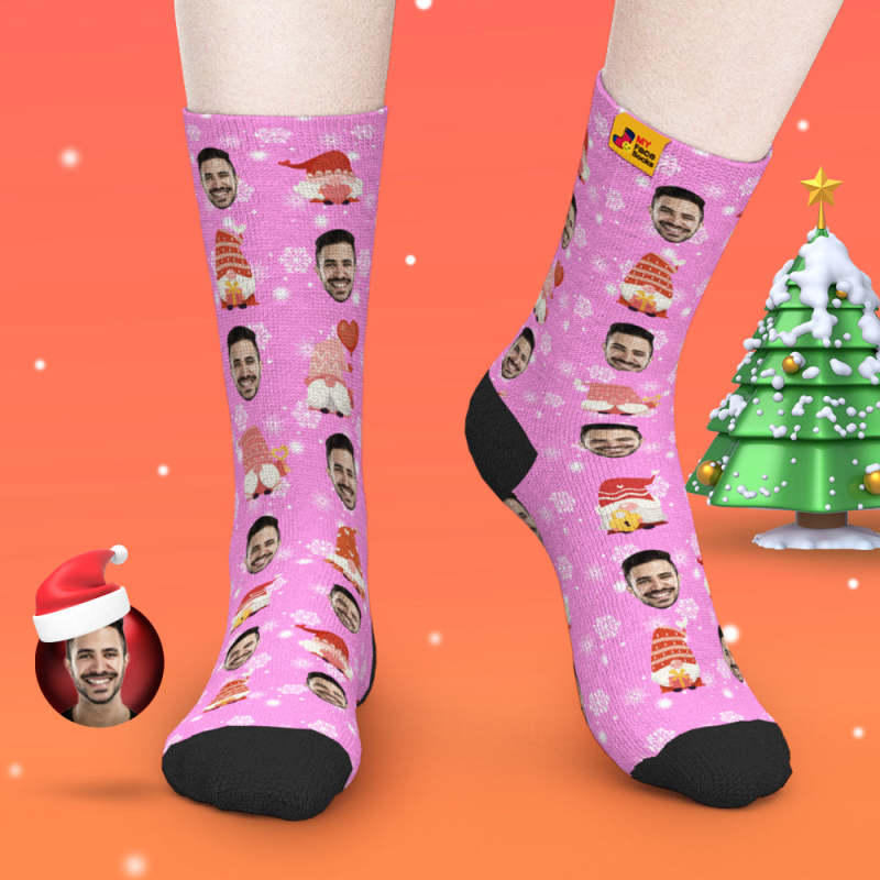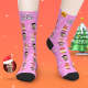 Pink Christmas Custom Face Socks Add Pictures and Name Cute Gift