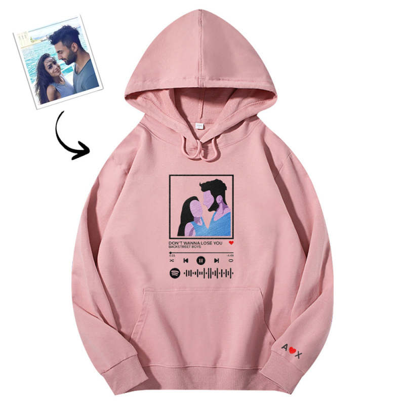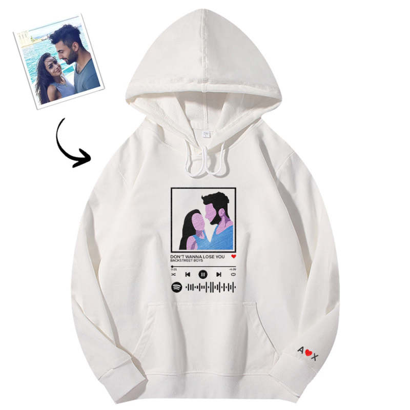 Scannable Spotify Code Embroidered Hooded Hoodie Cartoon Image Music Player Couple Gift