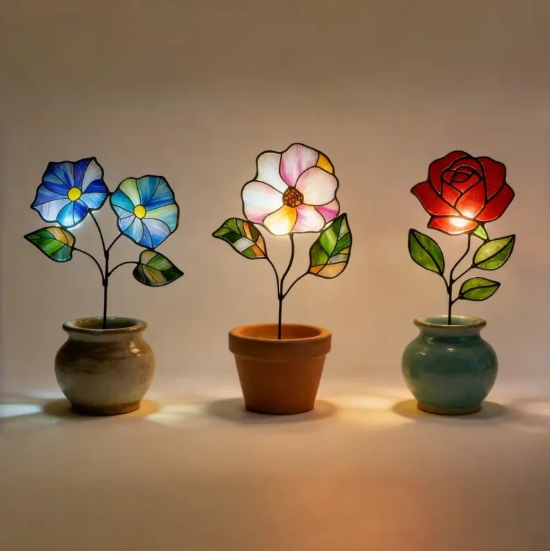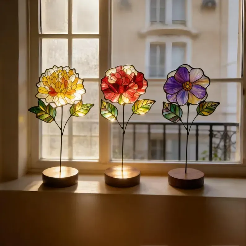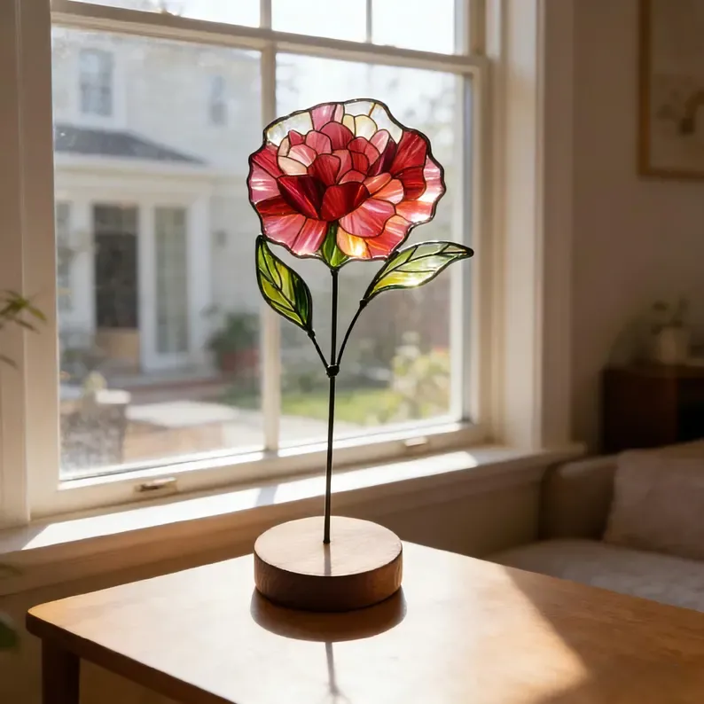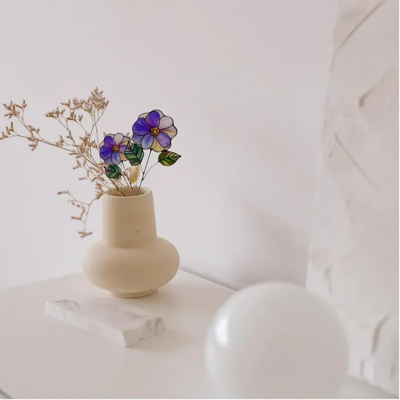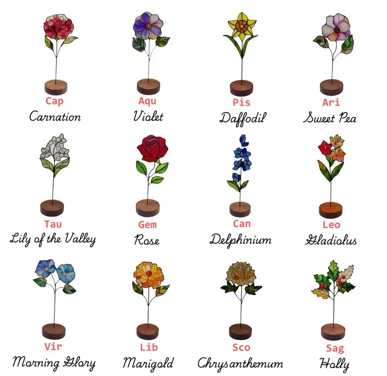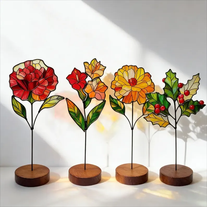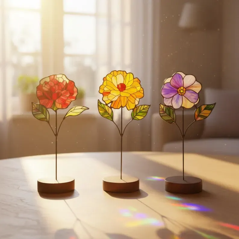 Stained Glass Flower Suncatcher, Birth Month Floral Plant Stake