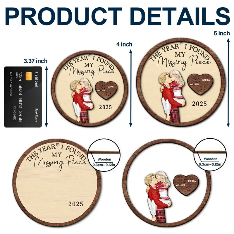 The Year I Found My Missing Piece Kissing Couples - Personalized 2-Layered Wooden Ornament