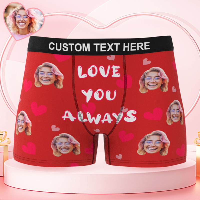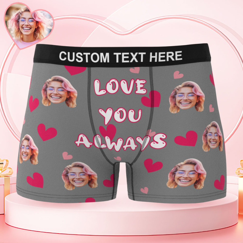 Valentine's Day Gifts Custom Face Men's Underwear Love You Always Personalized Boxer Briefs Gifts for Him Waistband Text Boxers