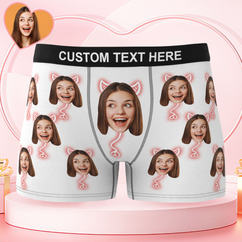 Valentine's Day Gifts Custom Face Men's Underwear Personalized Boxer Briefs Gifts for Him Waistband Text Boxers