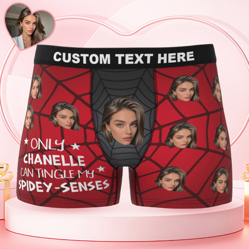Valentine's Day Gifts Custom Face Men's Underwear Spidey Senses Personalized Boxer Briefs Gifts for Him Waistband Text Boxers