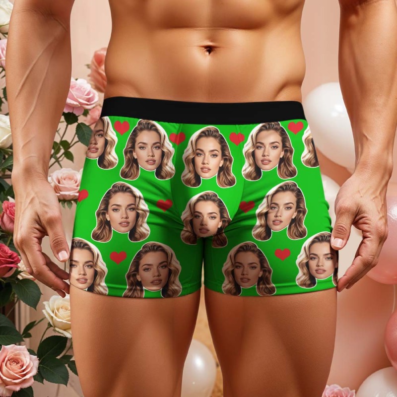 Gift For Men Custom Big Face Heart Boxer Shorts