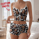 Valentine's Gifts Custom Face Appliques Notched Neckline Lingerie Set Leopard Print