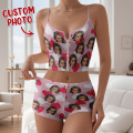 Valentine's Gifts Custom Face Appliques Notched Neckline Lingerie Set Red and Pink Heart