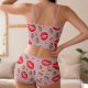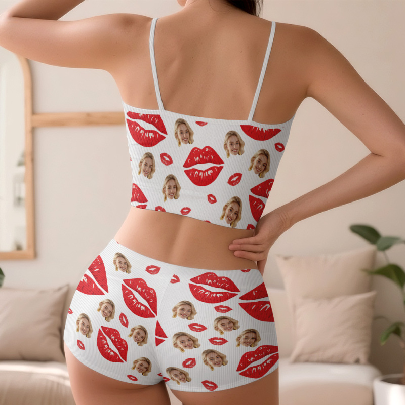 Valentine's Gifts Custom Face Appliques Notched Neckline Lingerie Set Red Lips