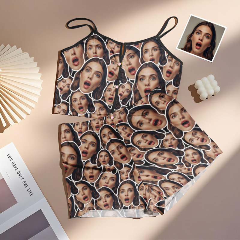 Valentine's Gifts Custom Facemash Appliques Notched Neckline Lingerie Set