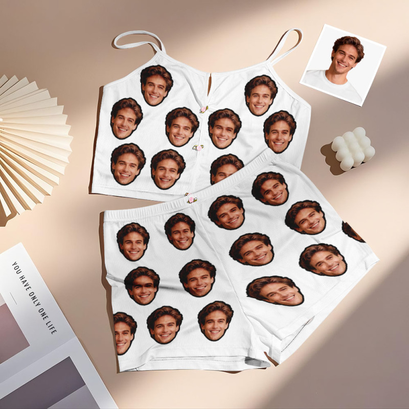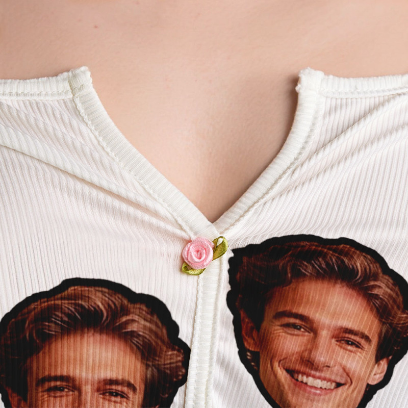 Valentine's Gifts Custom Photo Appliques Notched Neckline Lingerie Set