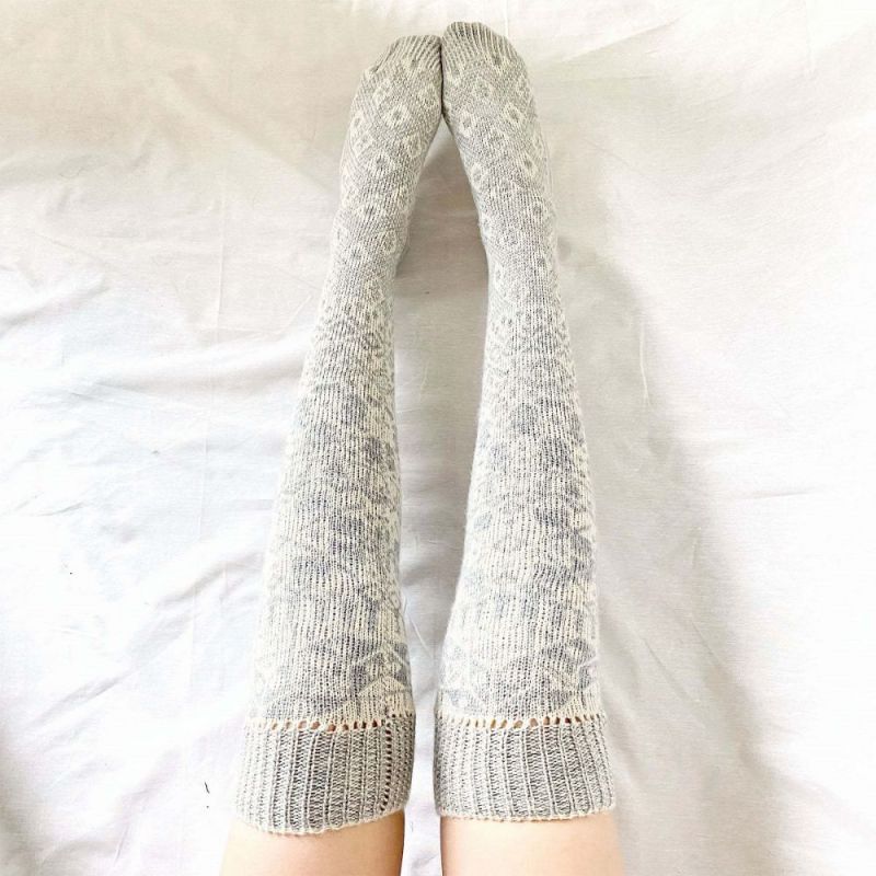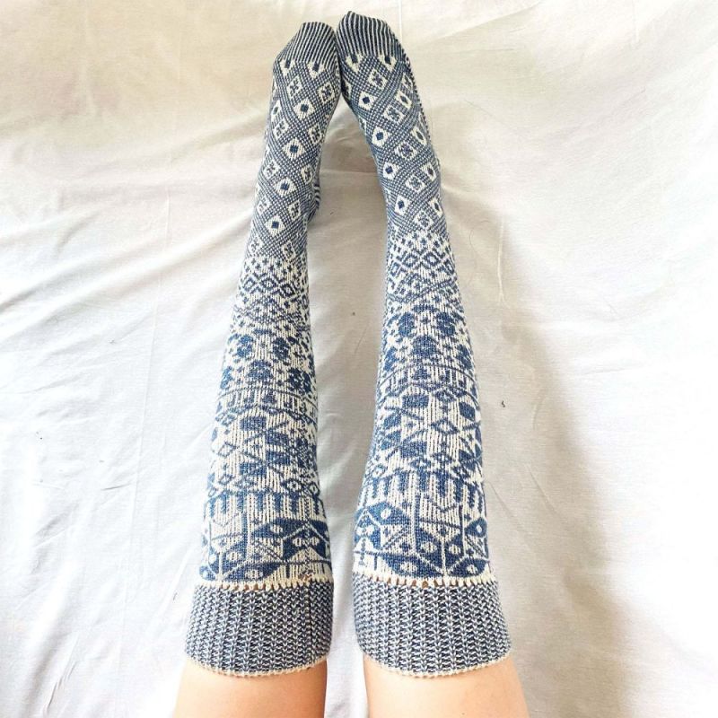Women Winter Leg Warmers Geometric Pattern Over The Knee Socks