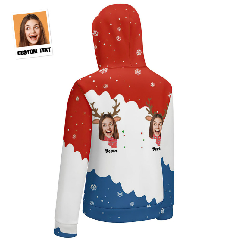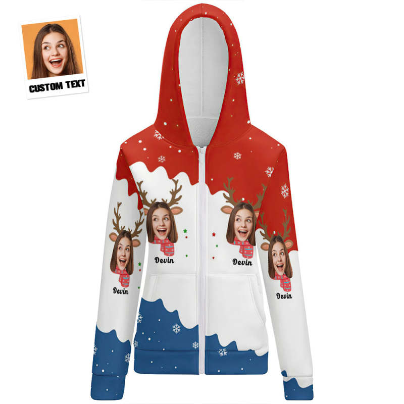 Women's Custom Face Zip Up Hoodies Reindeer Christmas Gift for Her