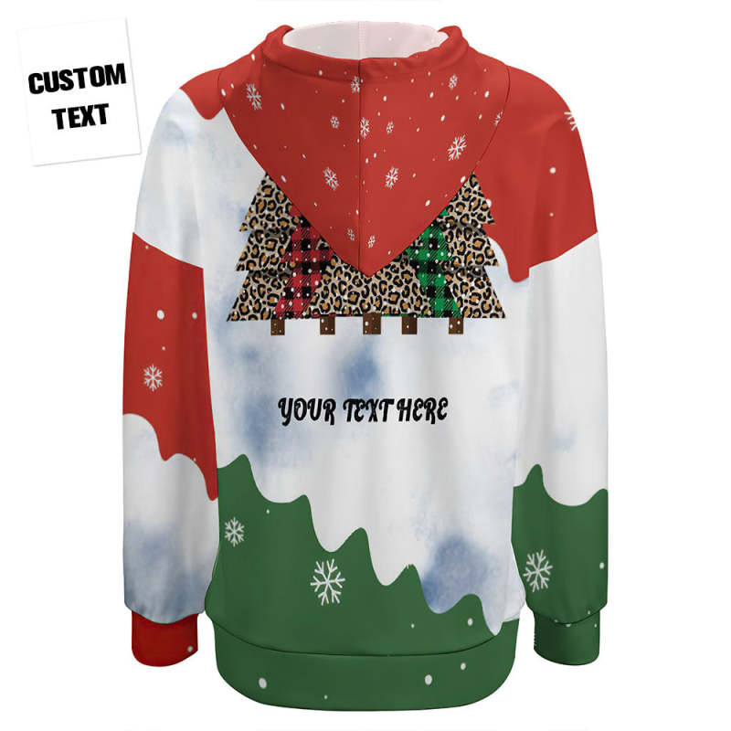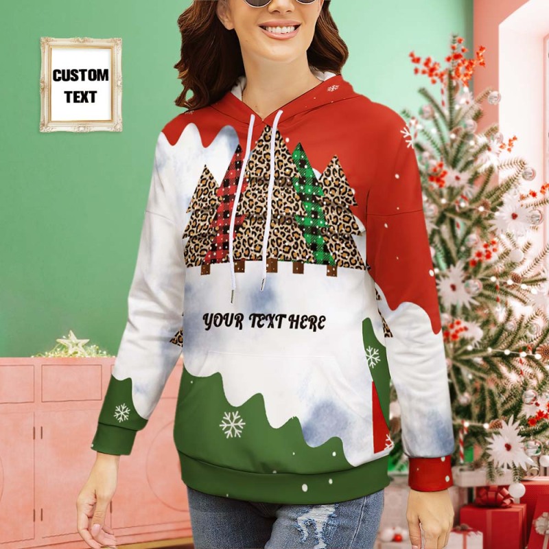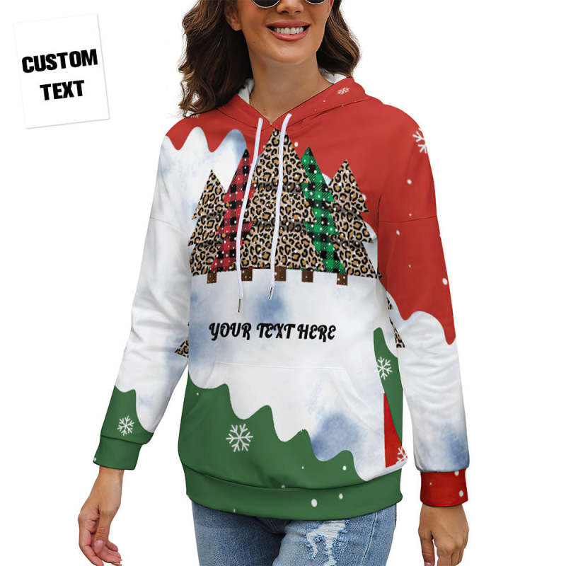 Women's Custom Text Christmas Tree Drop Shoulder Pullover Hoodie Gift for Her