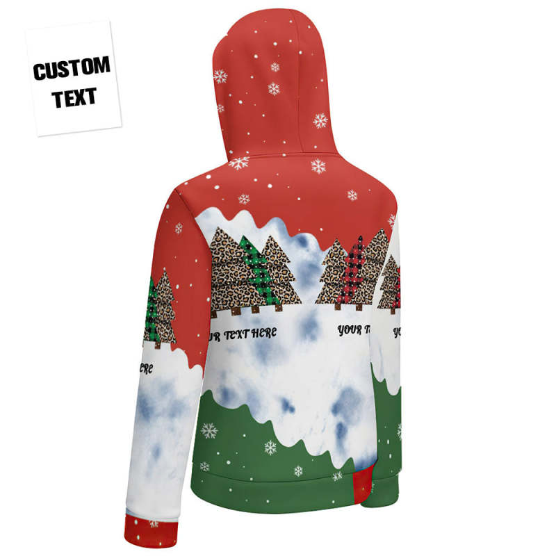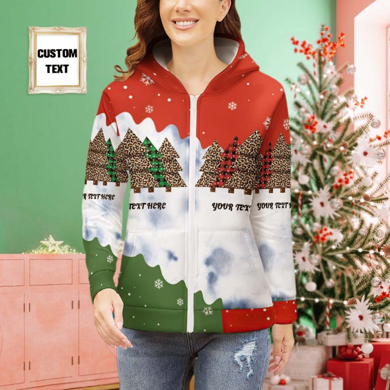 Women's Custom Text Christmas Tree Zip Up Hoodies Gift for Her
