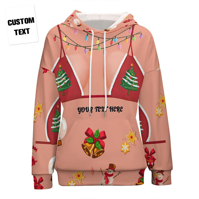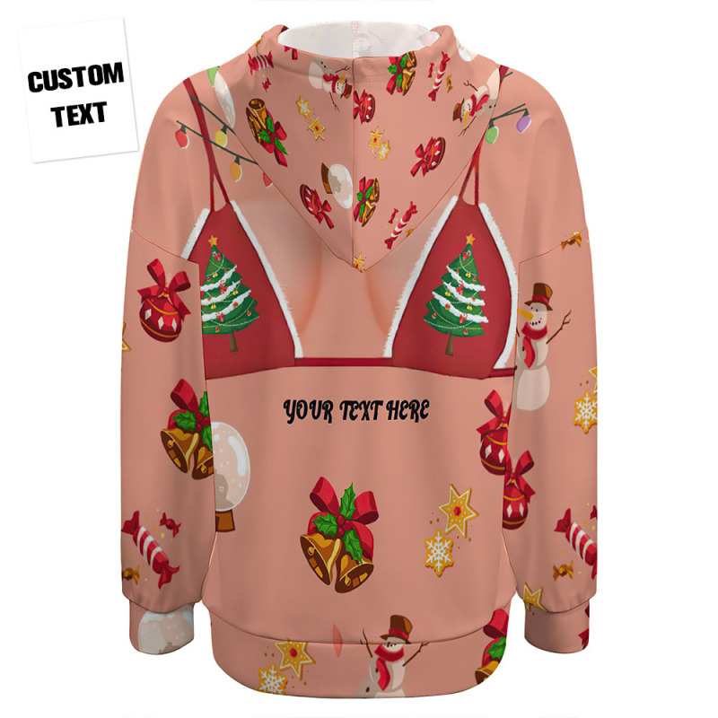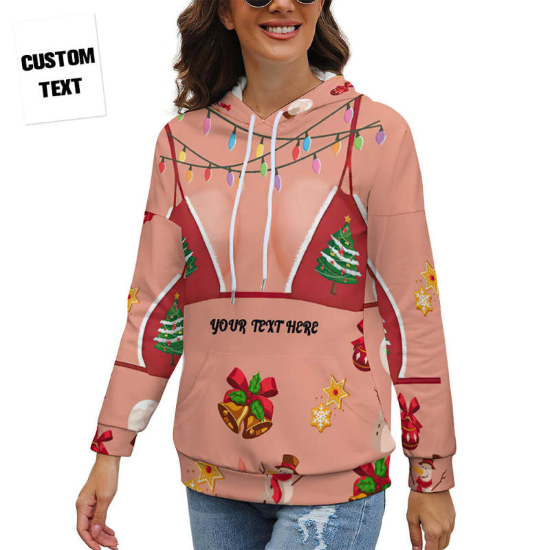 Women's Custom Text Funny Christmas Drop Shoulder Pullover Hoodie Gift for Her