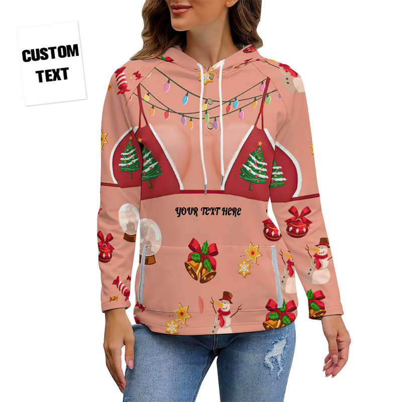 Women's Custom Text Funny Christmas Pullover Hoodie Gift for Her