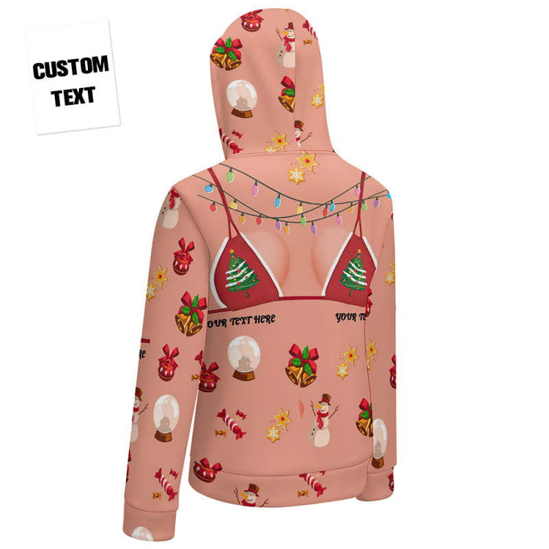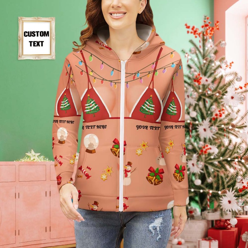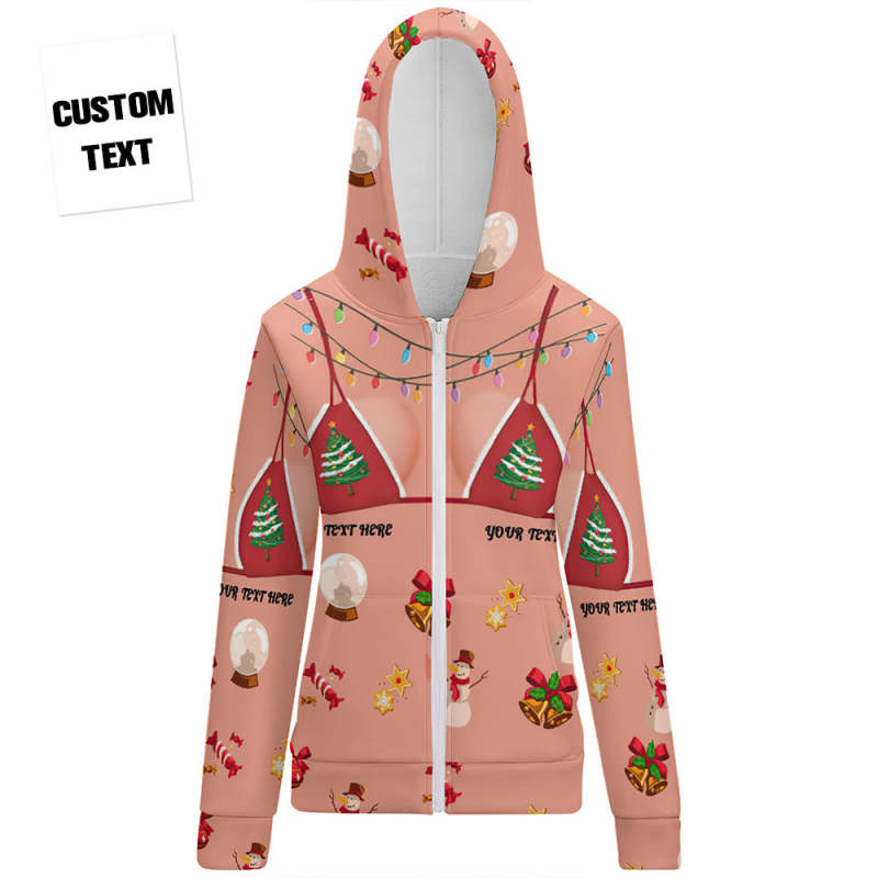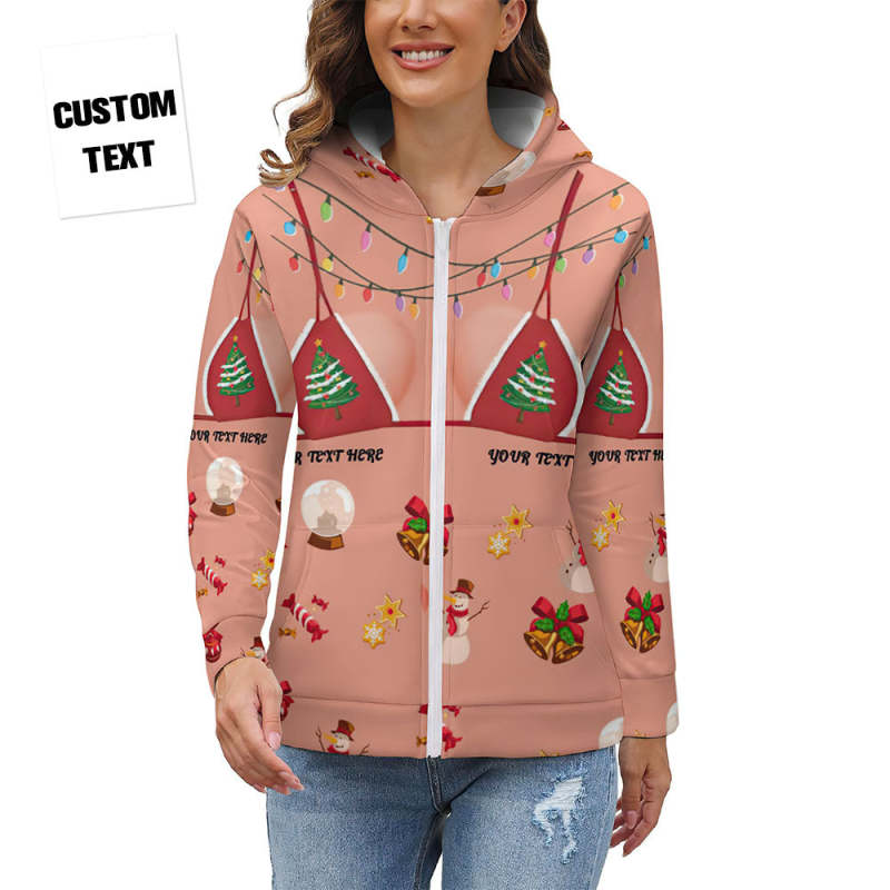 Women's Custom Text Funny Christmas Zip Up Hoodies Gift for Her