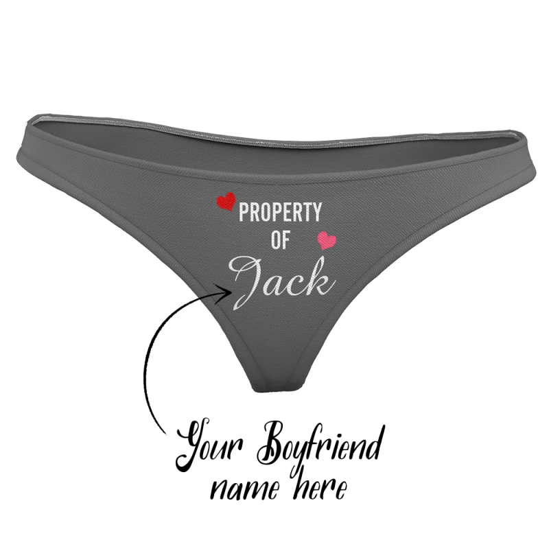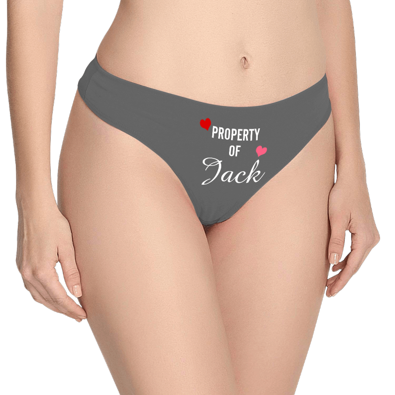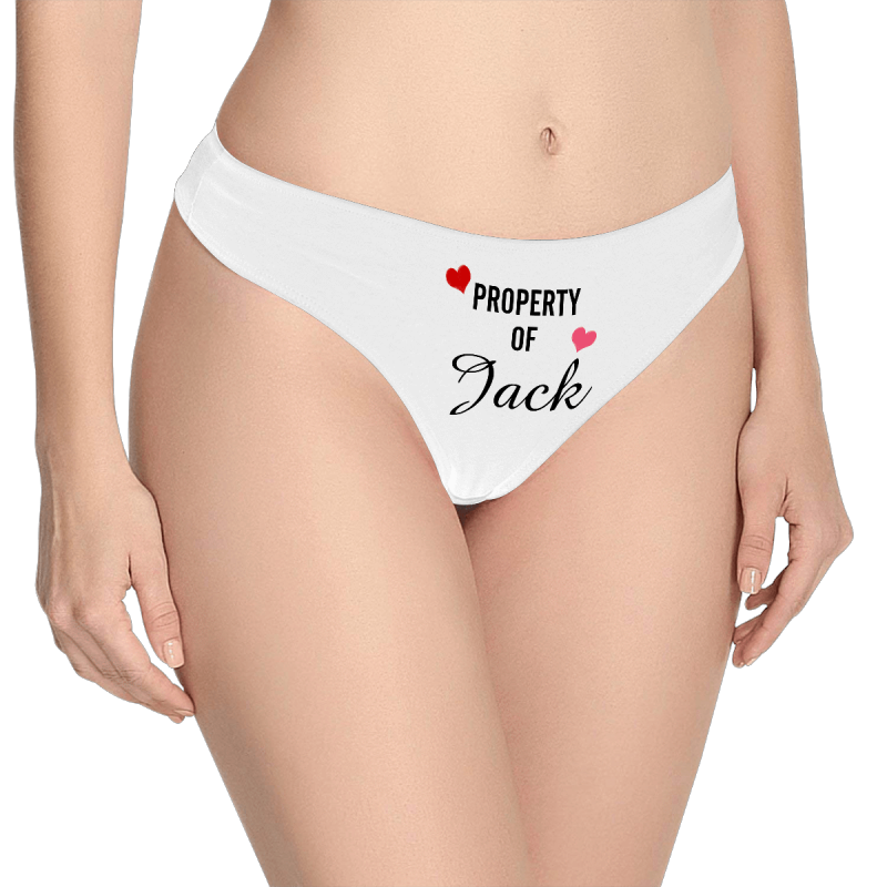Women's Plain Custom Name Property of Thong Panty - heart