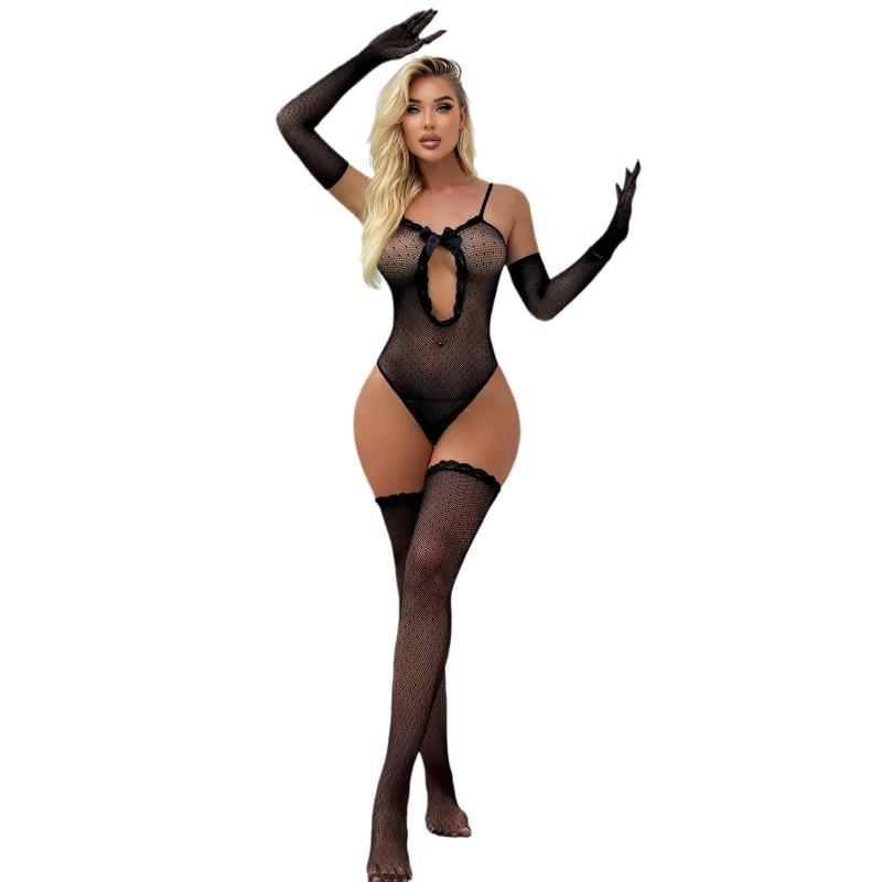 Women's Sexy Lingerie Sets Lace Bow Women's Lingerie Set with Thigh High Stockings Mesh Gloves and Accessories Costumes for